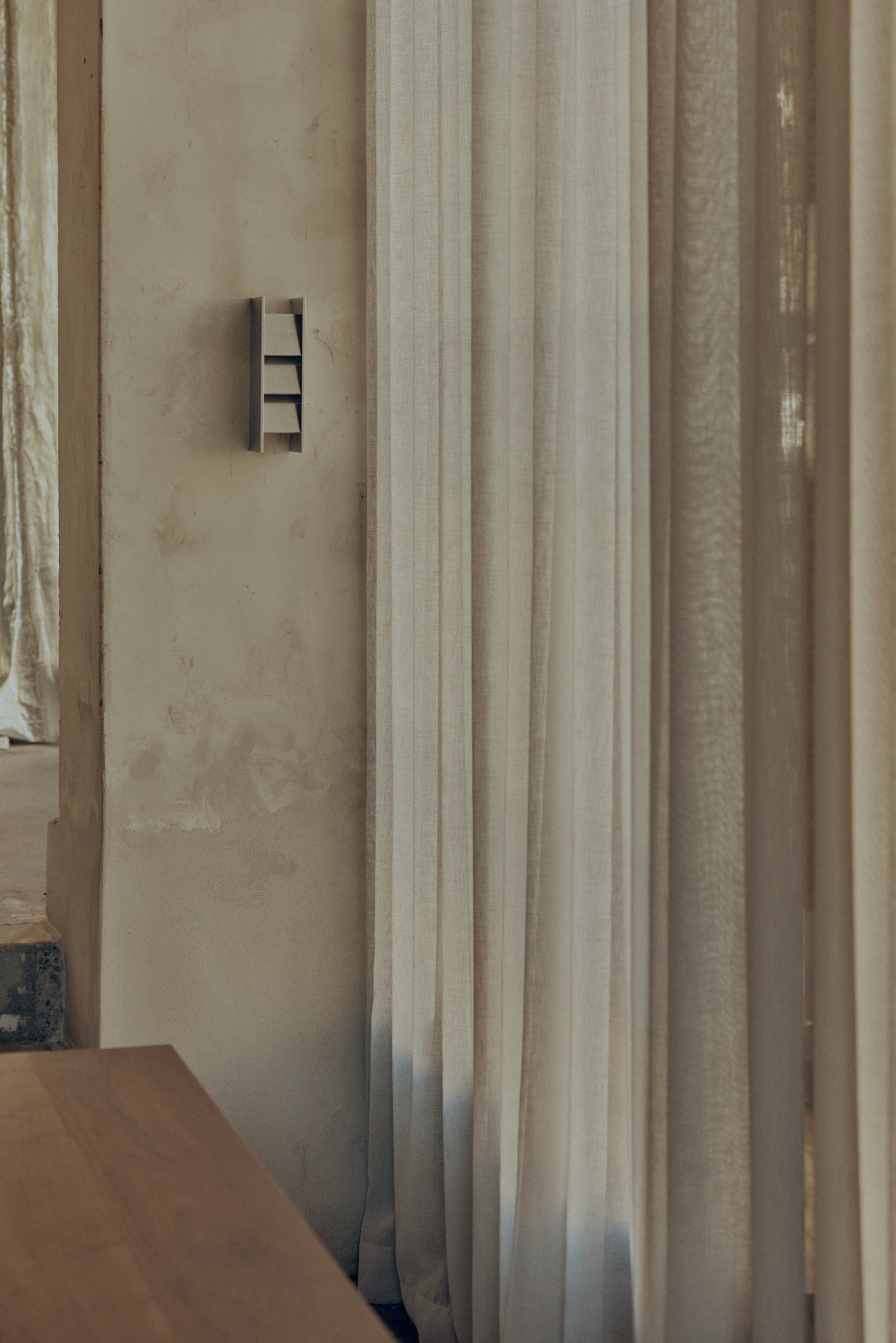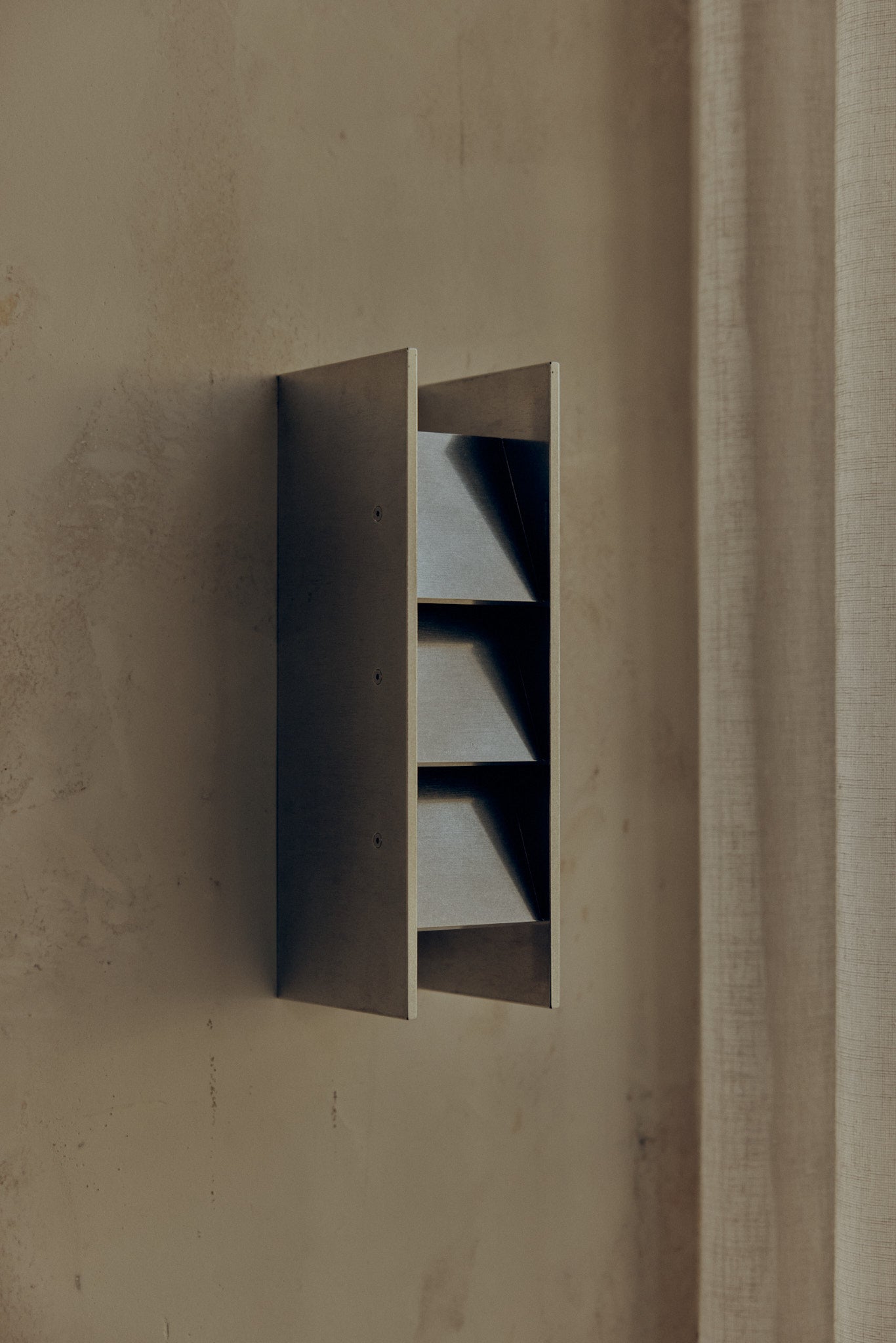 The Louvre Light is a wall fixture defined by a louvred face that diffuses and softens the light. Mounted upward or downward, it casts a gentle wash across the wall with minimal glare, offering both warmth and subtle definition to a space.